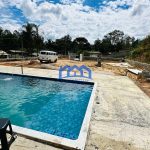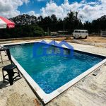 Piscina em vinil (7 x 3,5 m) já construída, faltando apenas acabamento lateral
