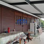 Varanda frontal com pia e churrasqueira pré-moldada