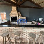 Área gourmet com churrasqueira forno e fogão a lenha