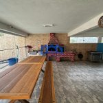 Área gourmet ampla com churrasqueira, forno e fogão a lenha