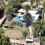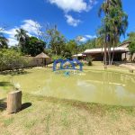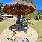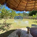 Lago com diversas espécies de peixes e quiosque à beira d’água
