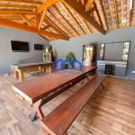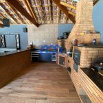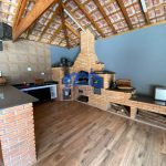 Área gourmet com churrasqueira, forno de pão, forno de pizza e fogão a lenha