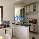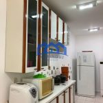 Copa e cozinha equipada com armários, fogão e geladeira
