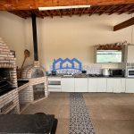 Área gourmet completa com cozinha equipada, churrasqueira e forno de pizza