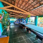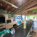 Área gourmet com churrasqueira, equipada com trio mineiro de tijolinho