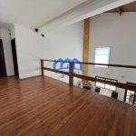 Sala com três ambientes e pé direito alto