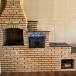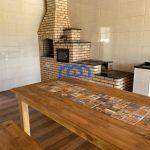 Área gourmet com churrasqueira, forno e fogão à lenha